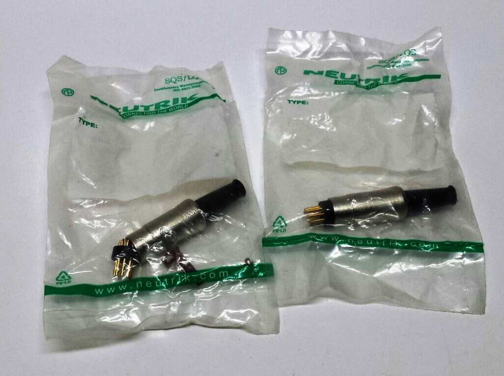 This Lot of 2 Neutrik NYS322G 5 pole connector gold connectors can help you build the supreme midi cable for your studio or live use. If you know how to solder, making your own cables can save you loads of loot and might even save your event when you are in the “field”. If you are miles from civilization and you need every last cable you have, have some back up! Keep a few connectors handy for a repair on site.